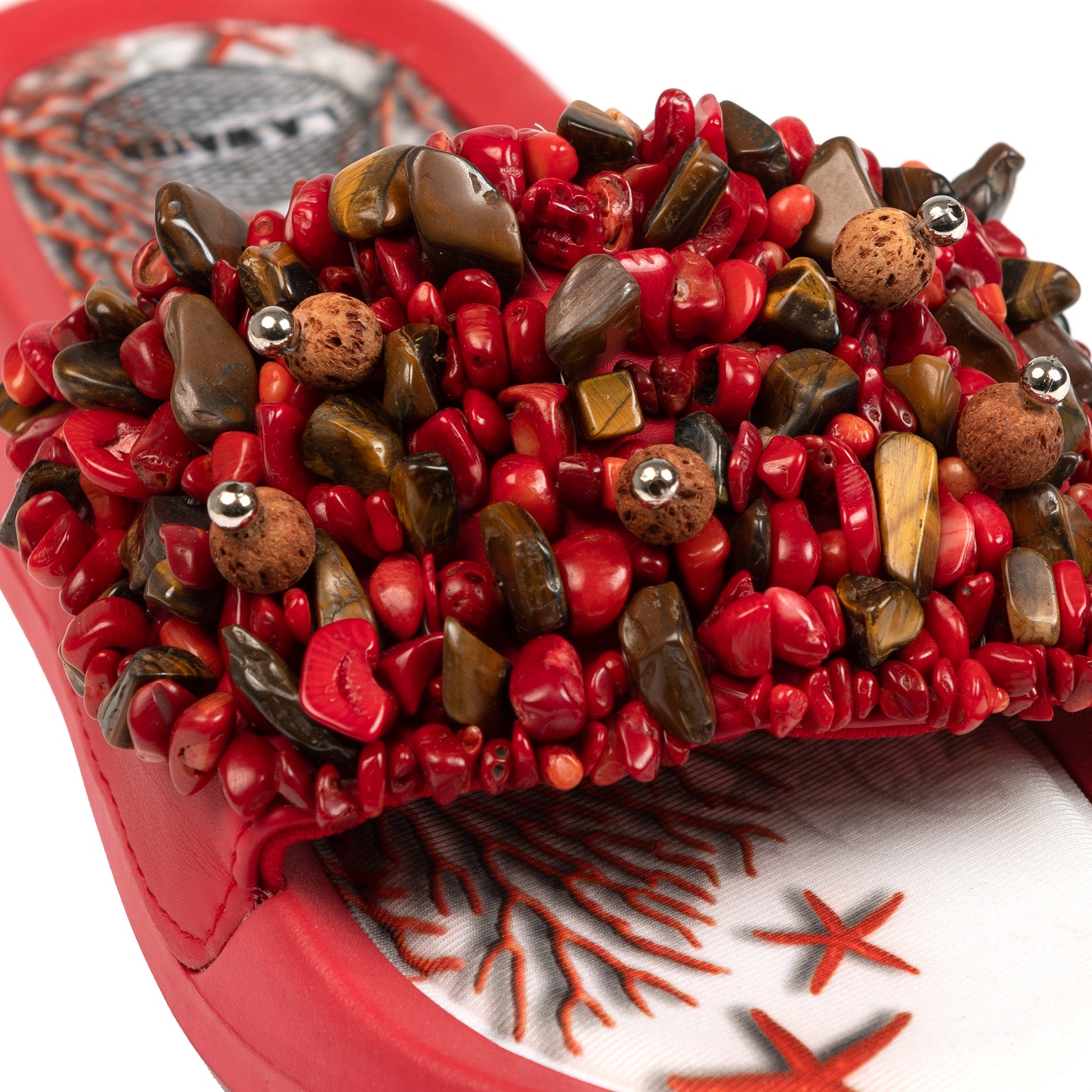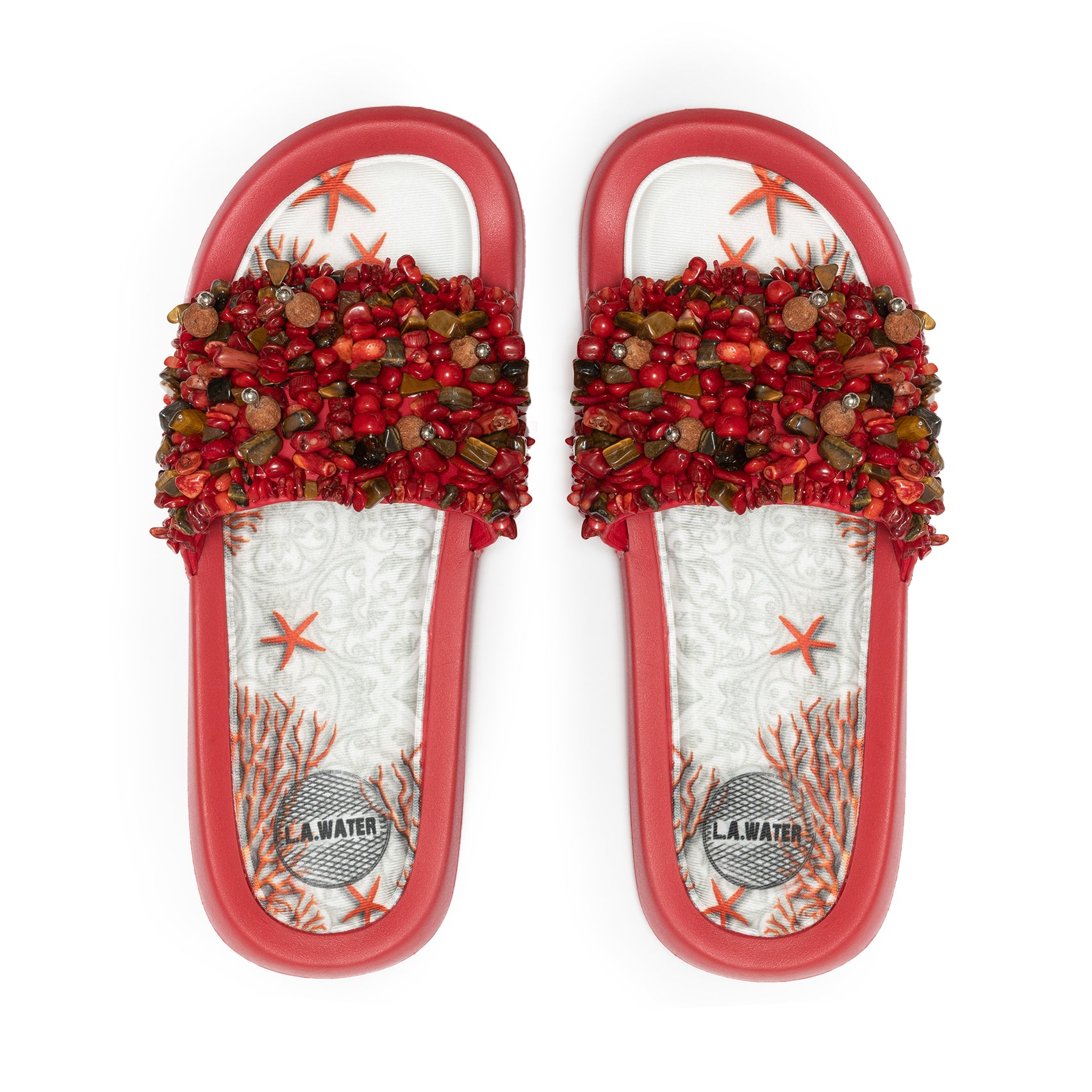Splendide ciabatte ispirate al mare e ai suoi magnifici coralli rossi.
