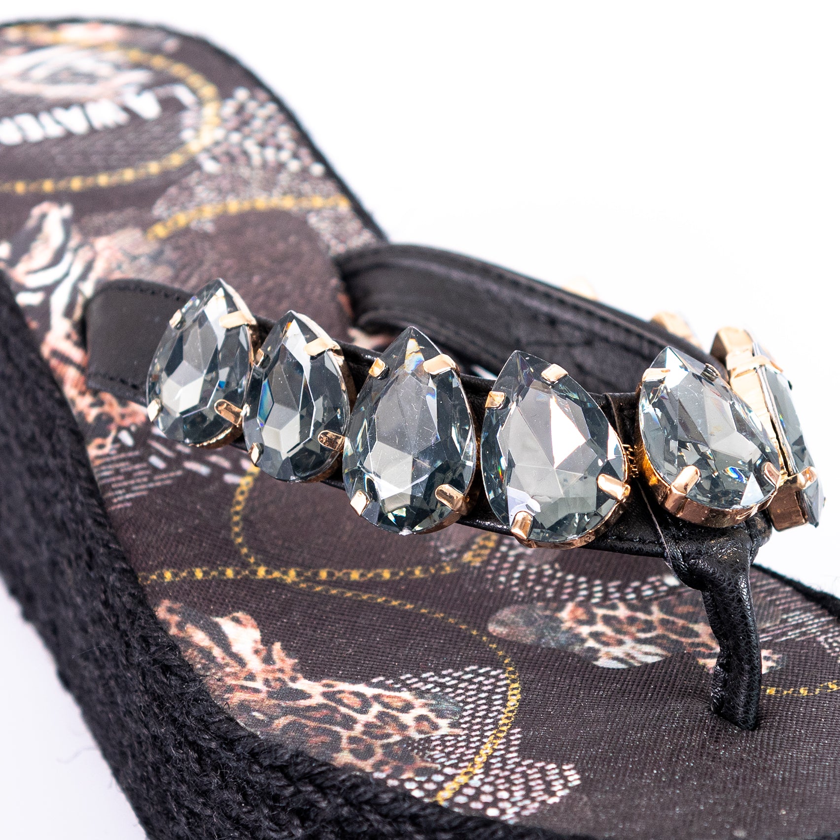 Tomaia con maxi pietre nere luminose a goccia, super scintillanti.