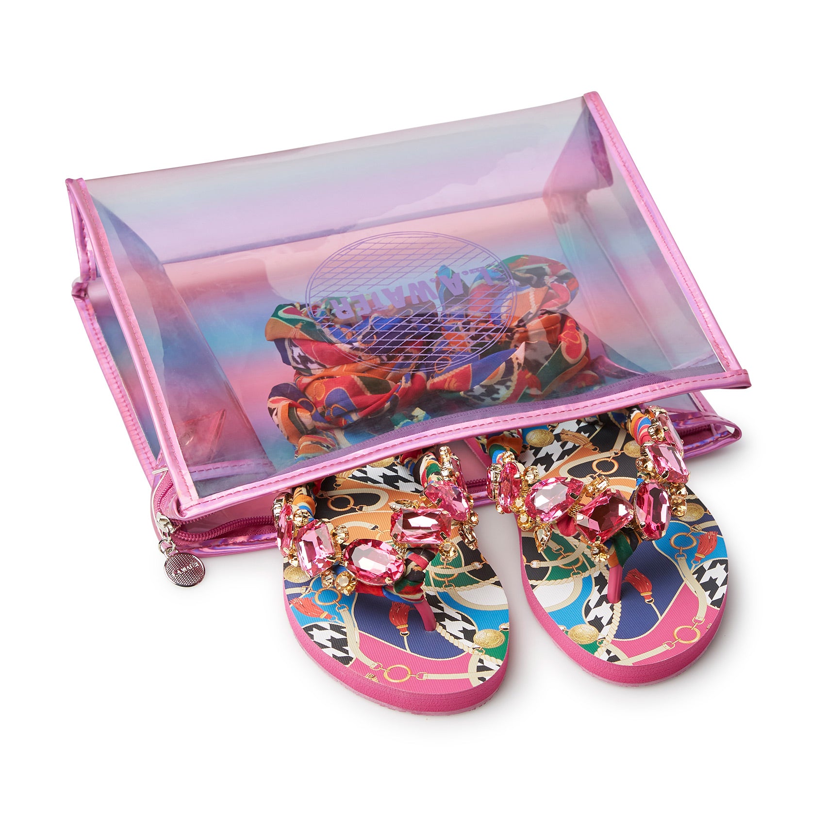 Le ciabattine sono elegantemente confezionate in pratiche pochette in stile “mermaid pic”, tutte con il logo L.A. WATER. Ogni paio è corredato di accessori glamour da indossare sia in spiaggia sia in città.