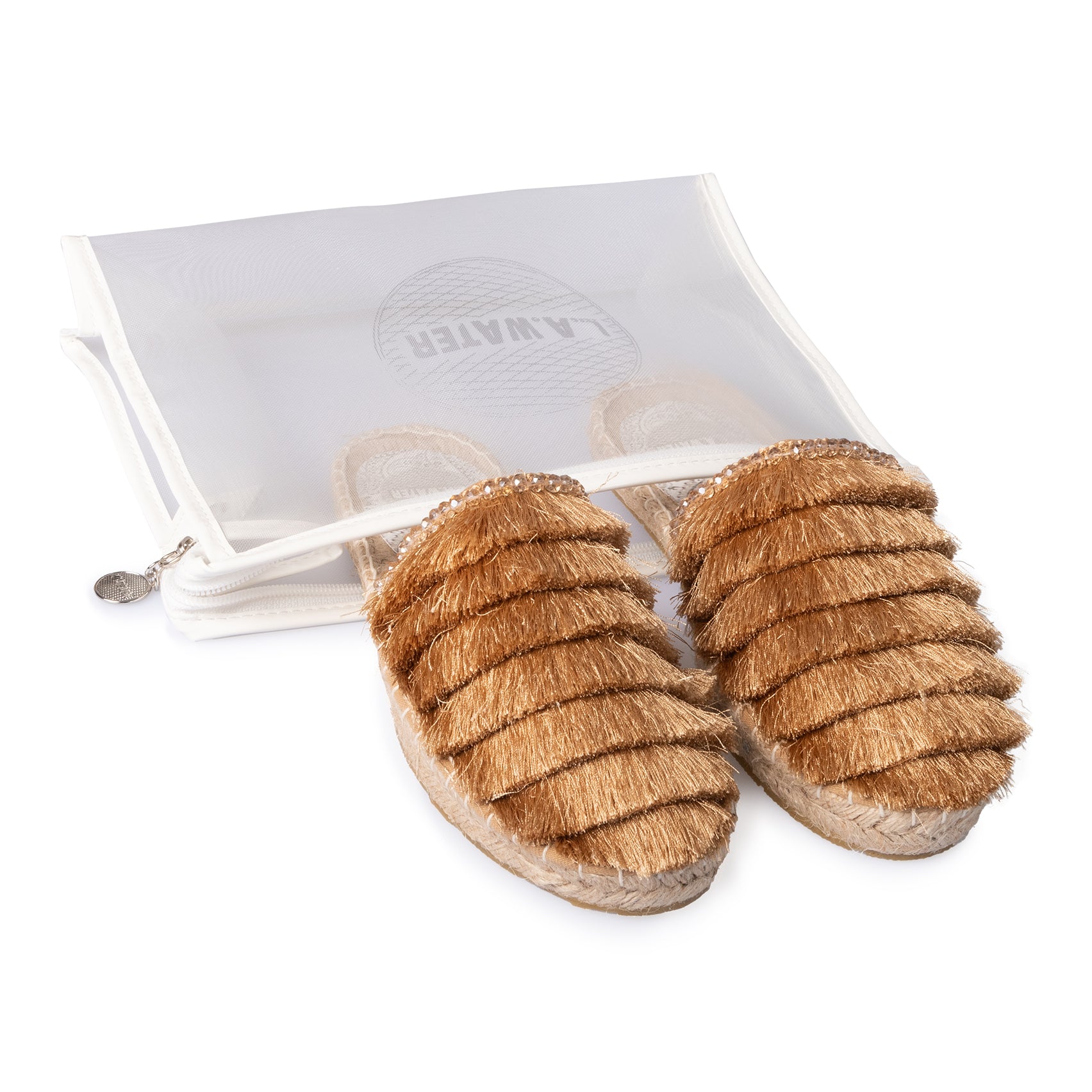 Packaging: Tutte le ciabatte sono elegantemente confezionate in pratiche bustine in rete bianca con logo L.A. WATER. Sono i tuoi accessori glamour da indossare con orgoglio, sia in spiaggia che in città.