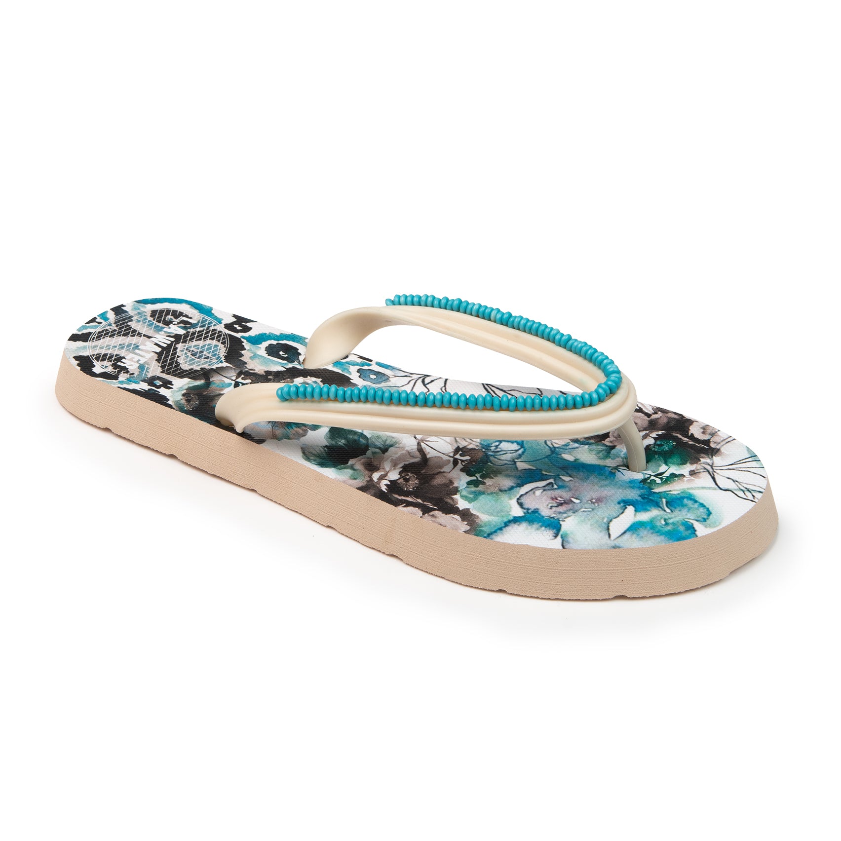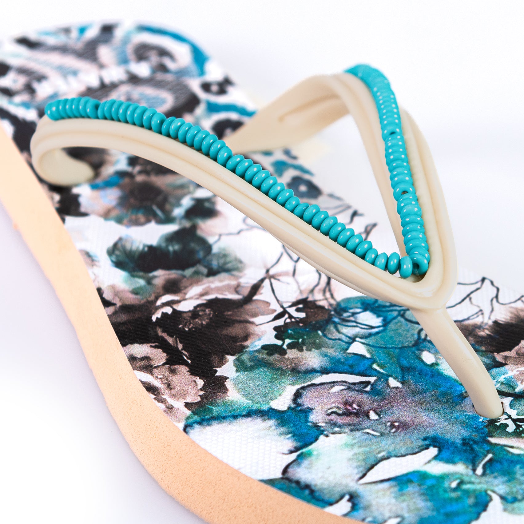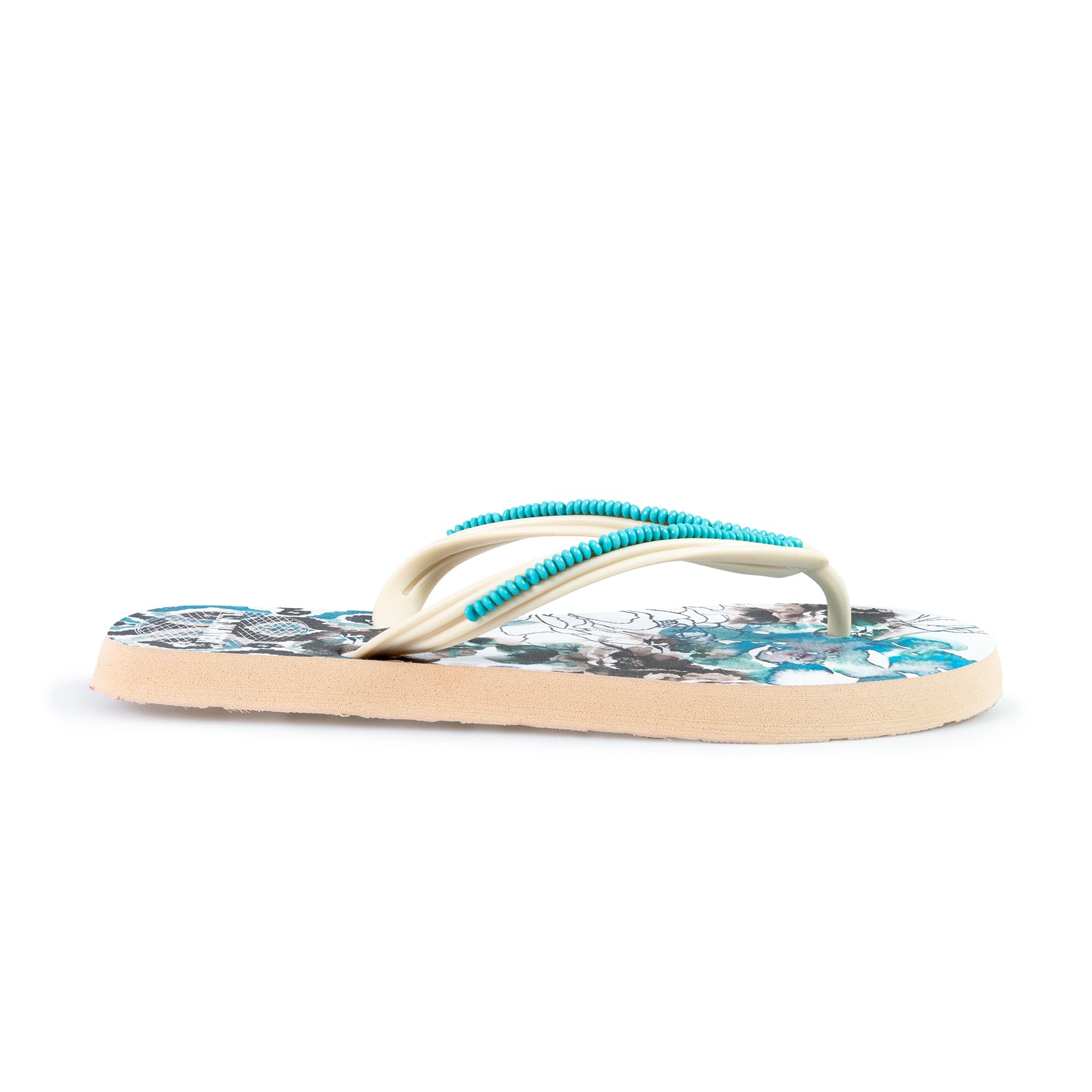 Infradito ispirata al mondo boho chic nei toni del marrone e dell'azzurro.