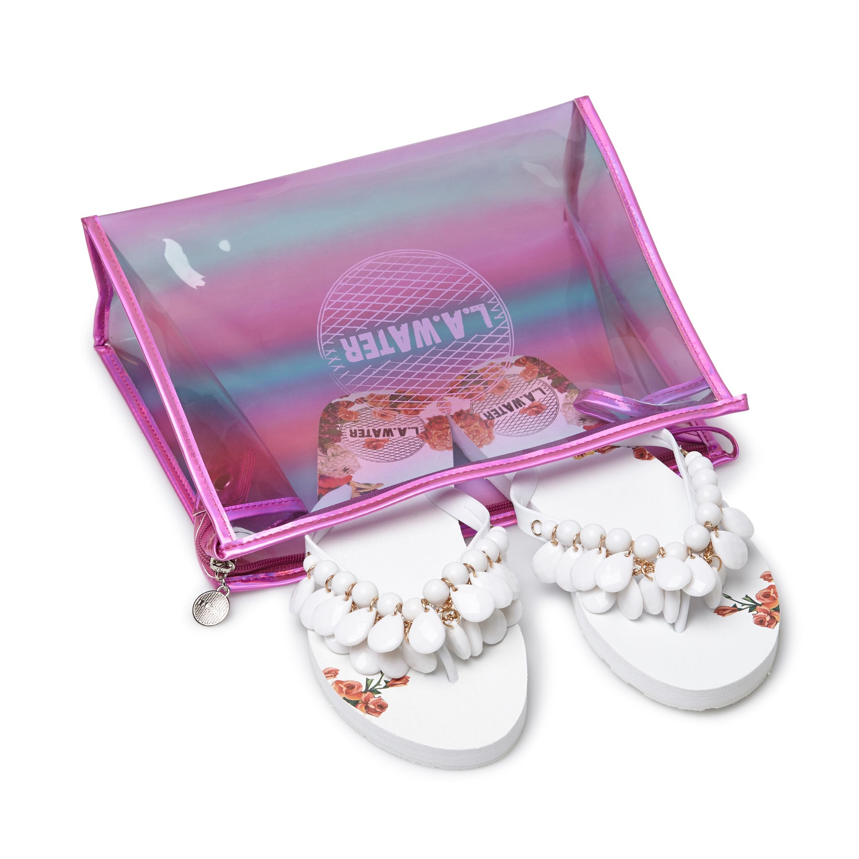Packaging: Le ciabatte sono confezionate in eleganti pochette pratiche in PVC effetto sirena con logo L.A. WATER. È il tuo accessorio glam da indossare sia in spiaggia che in città.