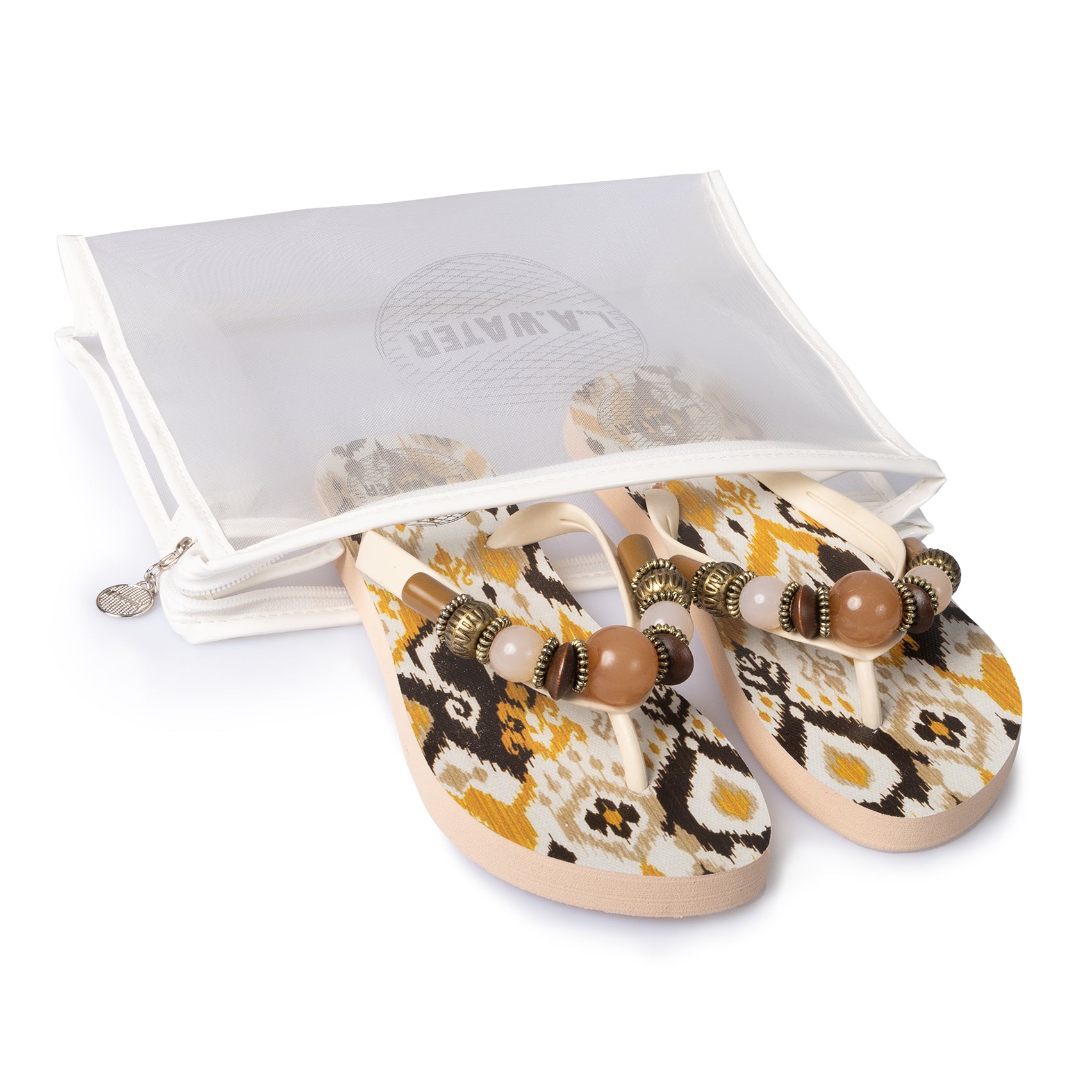 Packaging: Tutte le ciabatte sono elegantemente confezionate in pratiche buste in rete bianca con logo L.A. WATER. Sono i tuoi accessori glamour da indossare con orgoglio, sia in spiaggia che in città.