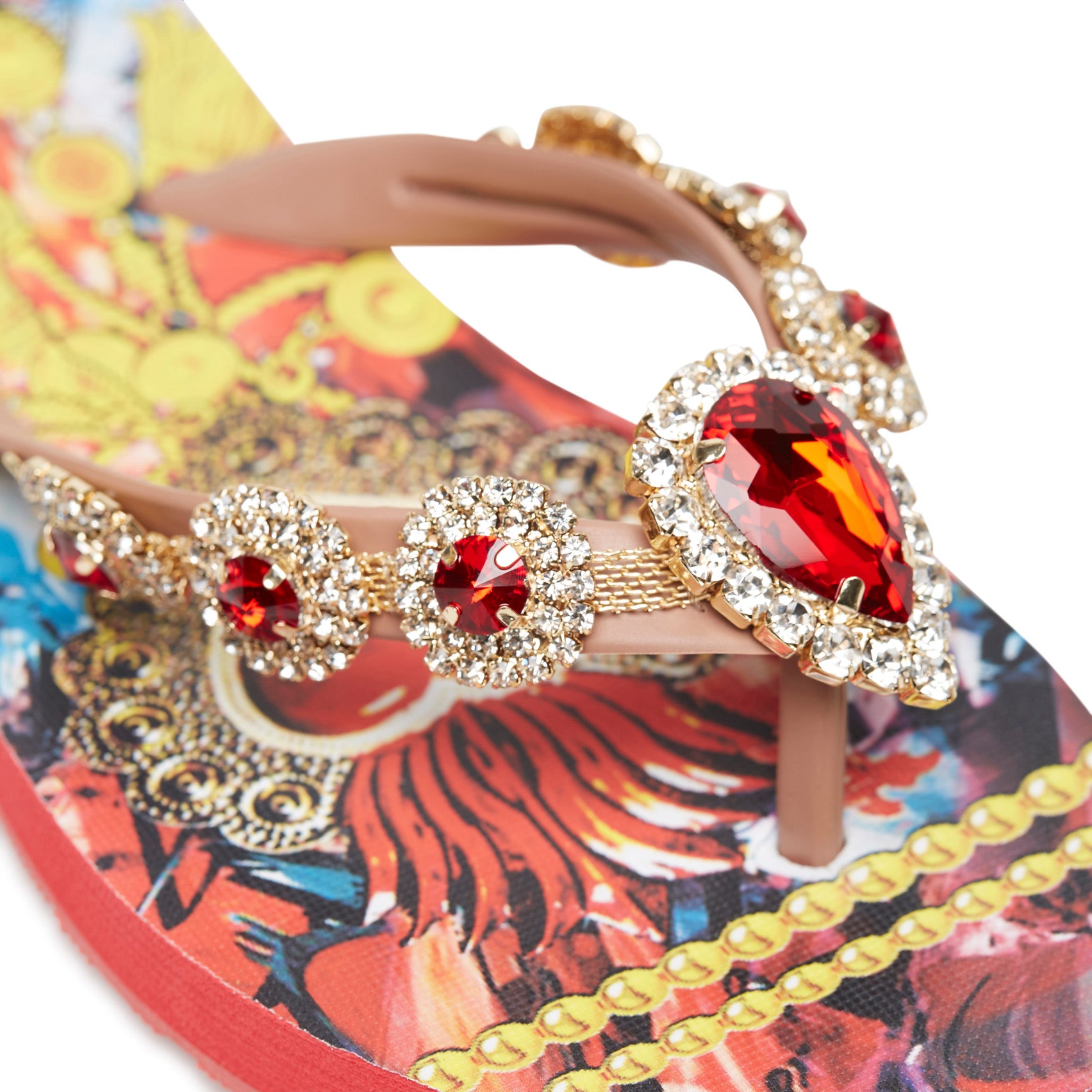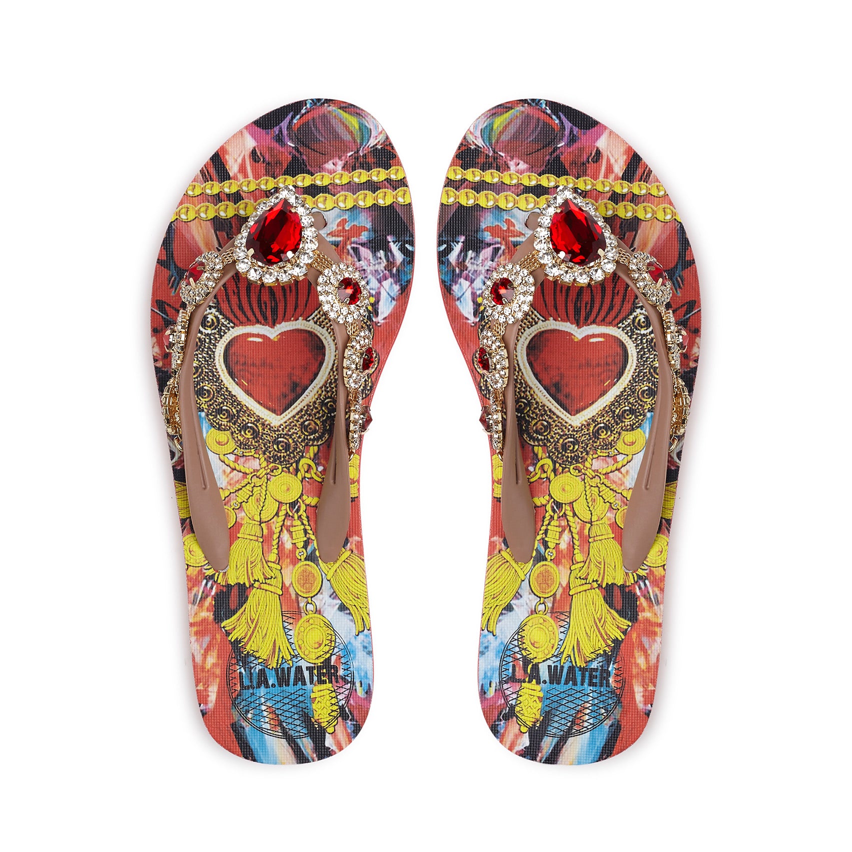 Esclusivi sandali multicolore ispirati all’arte sacra.
