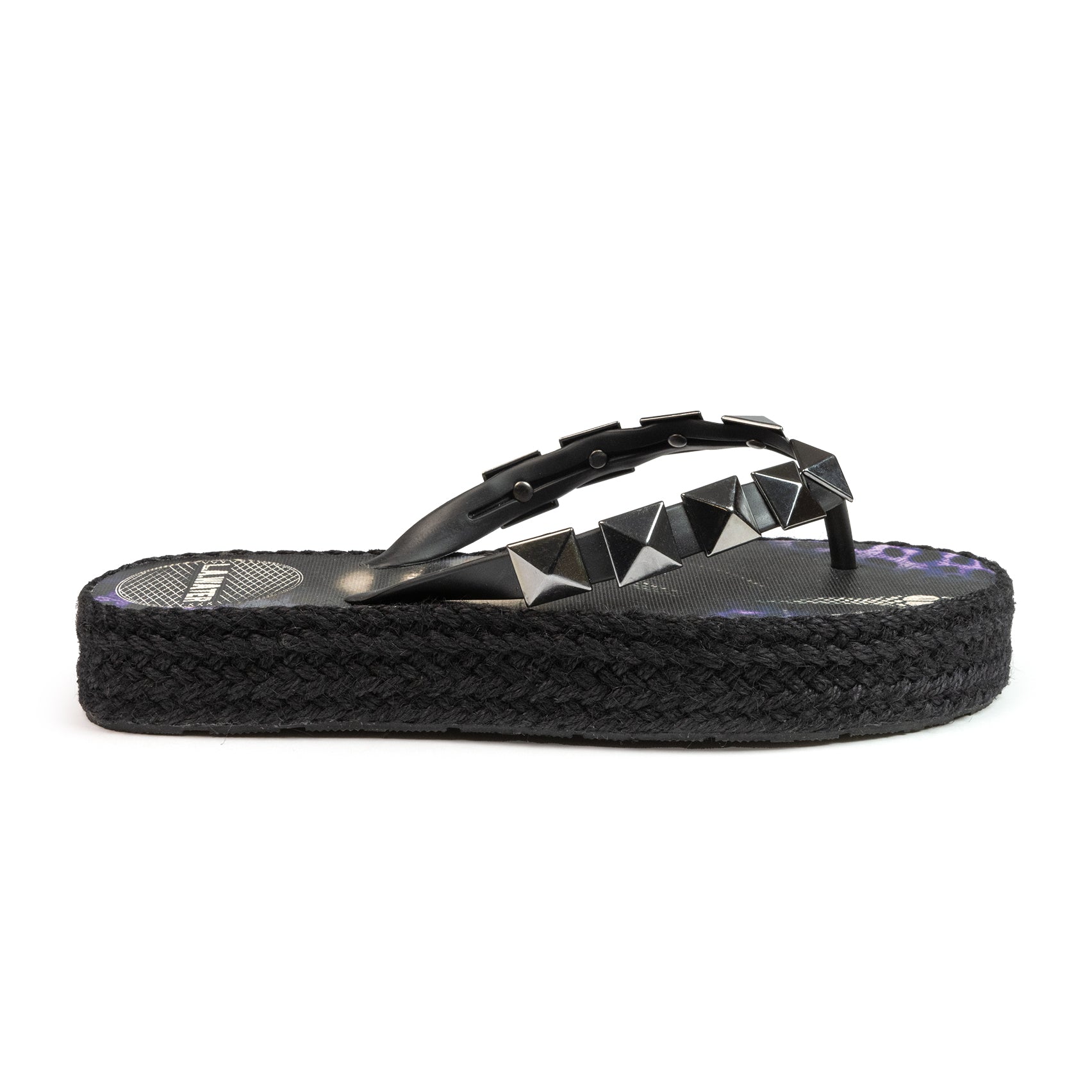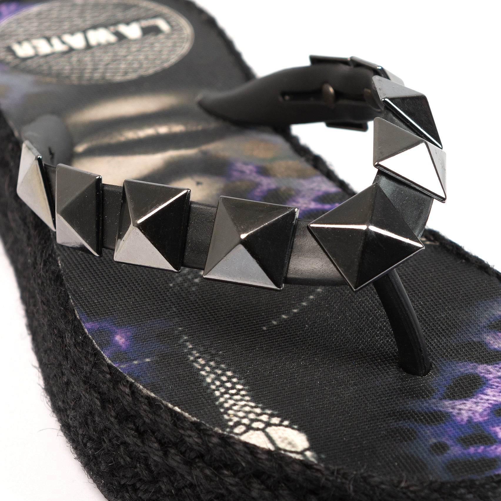Sandali dal design raffinato ispirati al mondo rock nei toni del viola e del nero.