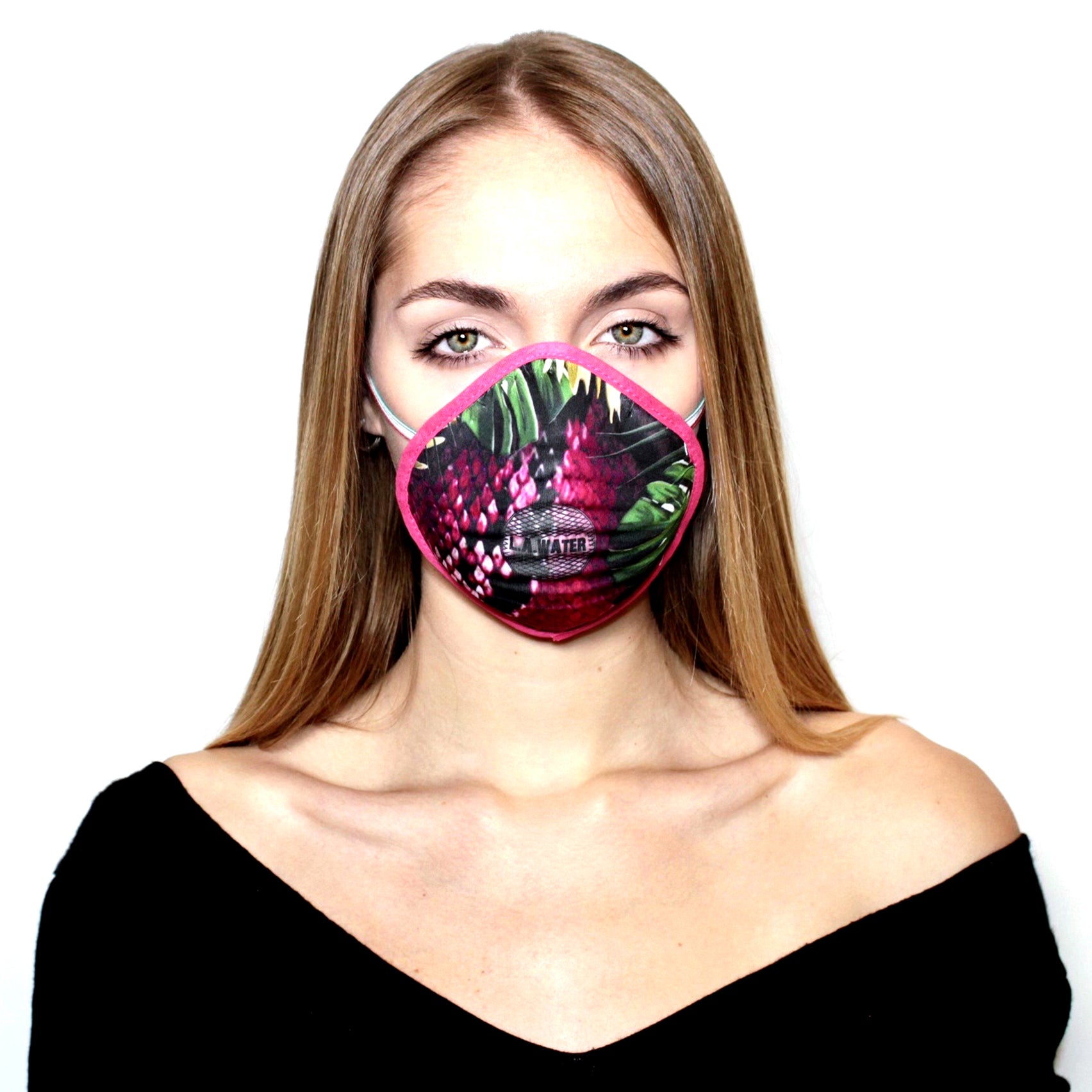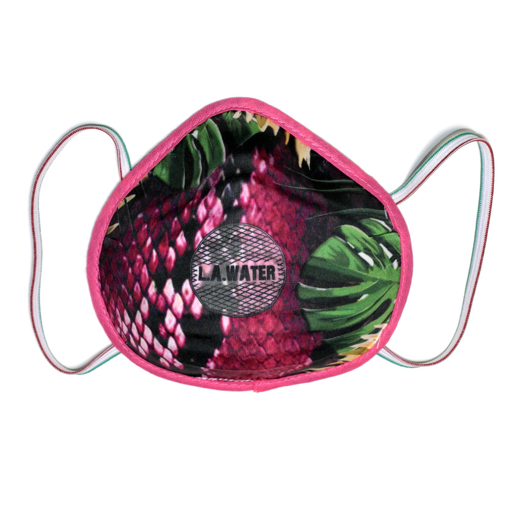 Ogni pacchetto contiene una maschera per l'acqua di Los Angeles, tutte le coperture sono lavabili con una stampa personalizzata ispirata alle pantofole dalla linea dei fiori, completa del logo dell'acqua L.A. al centro e 3 filtri intercambiabili, intercambiabili.