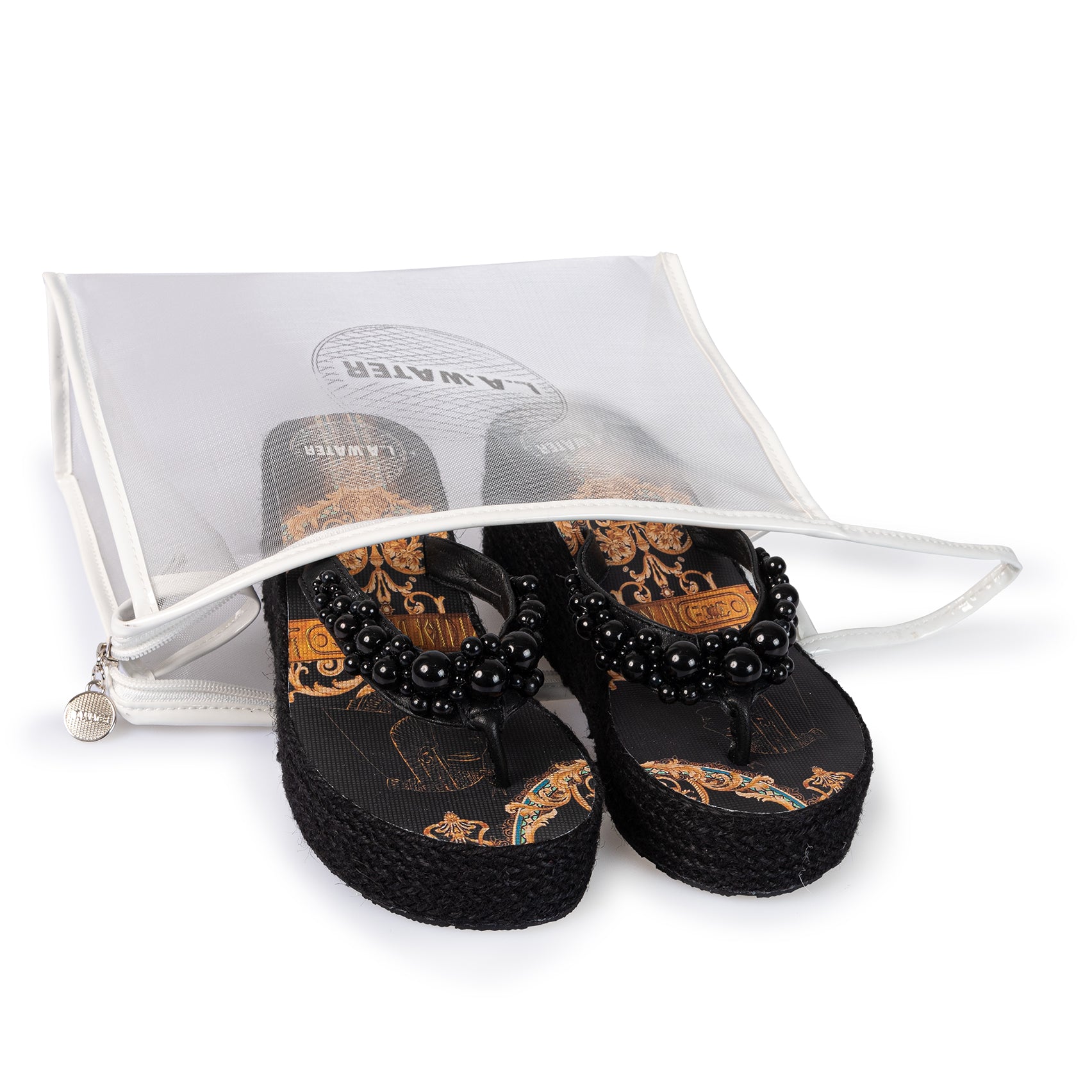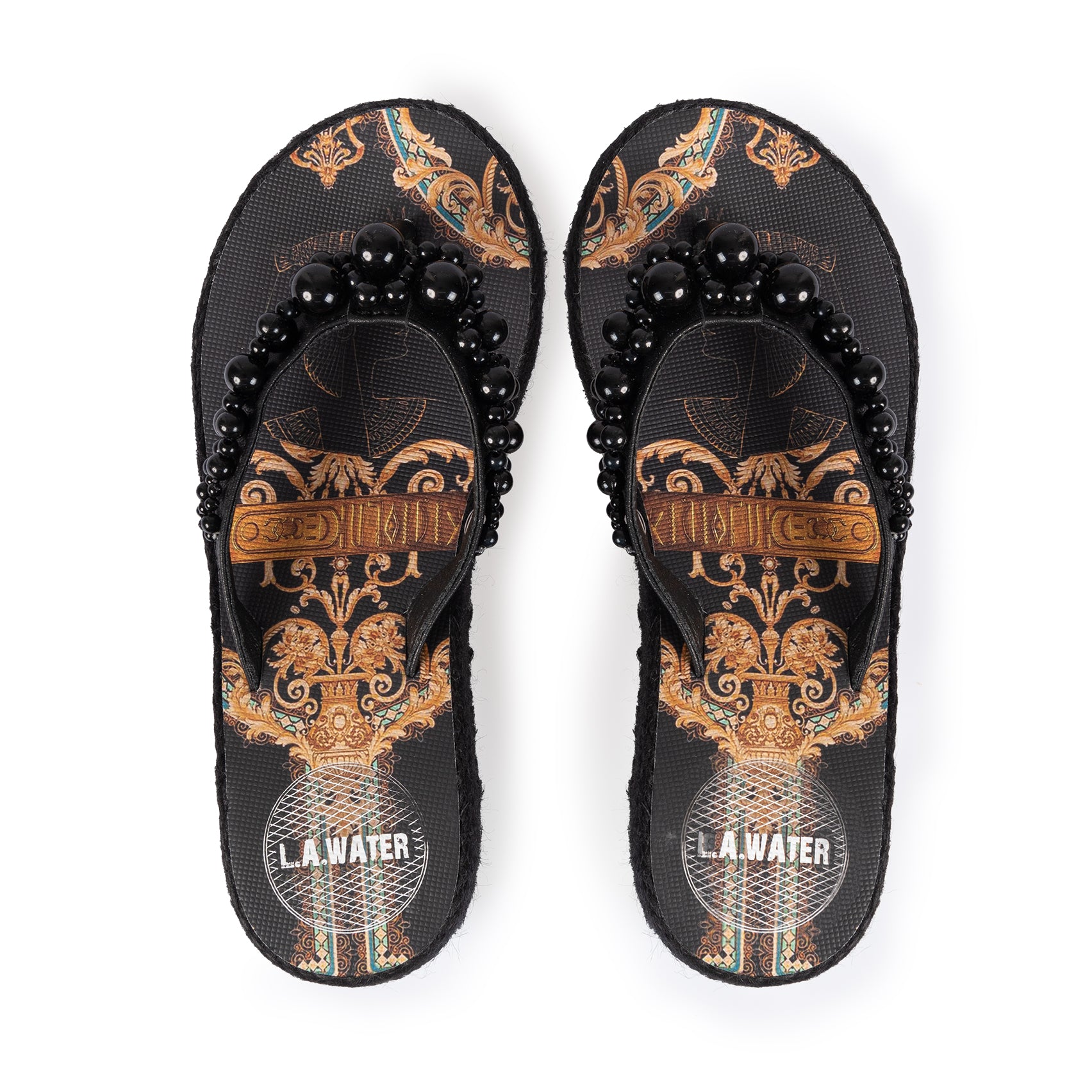 Packaging: I sandali vengono venduti nella pratica pochette in rete bianca con logo L.A. WATER. Accessorio glam da indossare al mare o in città.
